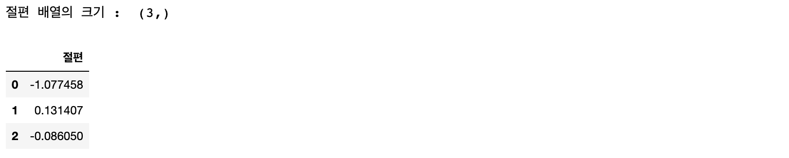 df_intercept = pd.DataFrame(columns=["절편"], data = linear_svm.intercept_)