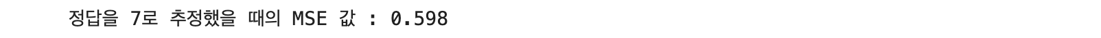print("정답을 7로 추정했을 때의 MSE 값 : {:.3f}".format(mean_squared_error(np.array(y), np.array(t))))