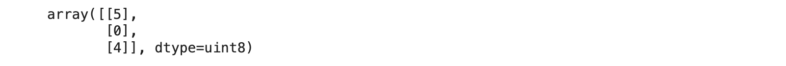 위 예에서의 출력은 [y [0, 2], y [1, 7], y [2, 0], y [3, 9], y [4, 8]]인 Numpy 배열이 만들어지는 것을 알 수 있습니다.