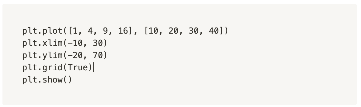 plt. x/y lim(start, end)을 사용하여 x축과 y축의 값을 지정할 수 있습니다.