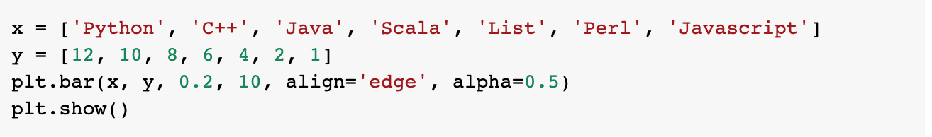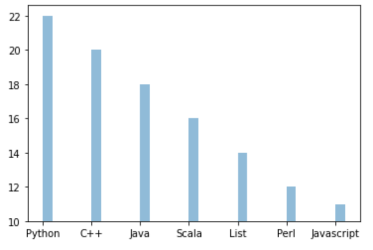 # alpha = 막대 색깔과 배경과 섞이는 정도를 의미합니다. <- alpha blending